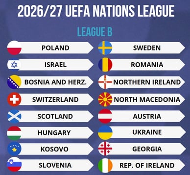 Потенційними суперниками України на груповому етапі Ліги B 2026/27 можуть стати: