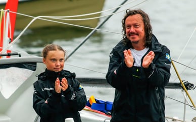 ![Грета Тунберг перетнула Атлантику на вітрильнику Грета Тунберг подорожує на вітрильнику]()
