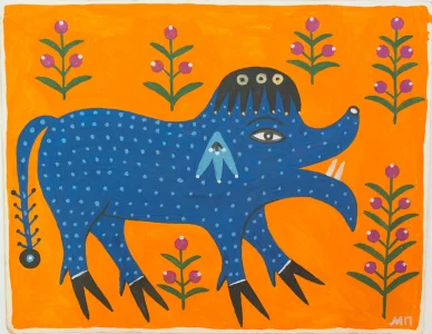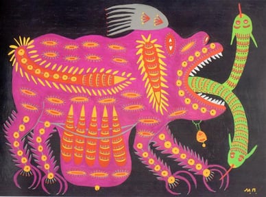 Картина Марії Примаченко “Звір ікловатий”, 1993 рік
