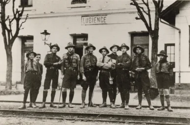 Степан Бандера (крайній справа) під час пластових мандрівок у селі Люблинець