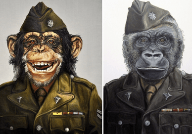 Однією з найвідоміших тем у його творчості стала «антропоморфізація мавп», де він грається з ідеєю межі між людиною та твариною, натякаючи на примітивність соціуму, консюмеризм та постмодерністське розмиття ідентичності. Мова про серію картин «Психодарвінізм», де він зображує мавп у людських позах, намагаючись дослідити природу людської поведінки.