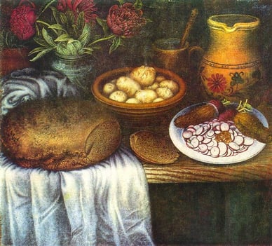 - «Люди та побут»: картини, що відображають життя українського села, його традиції та обряди. Серед них: «Весілля», «Ярмарок», «Селянське подвір'я».