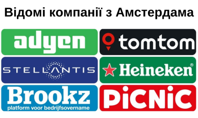 Відомі компанії в Амстердамі | Adyen, TomTom, Stellantis, Heineken, Brookz, Picnic, Philips, ING |