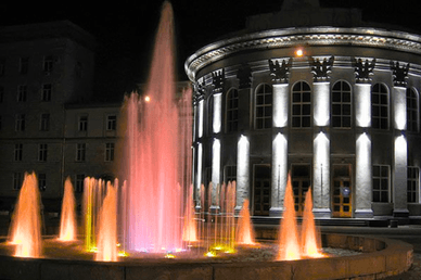 Музичний фонтан в Черкасах вночі