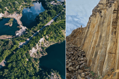 Кварцовий кар'єр поблизу селища Нова Водолага — це унікальний природний об'єкт, створений людськими руками. Його часто називають Блакитним озером через насичений бірюзовий колір води в оточені білих пісків.