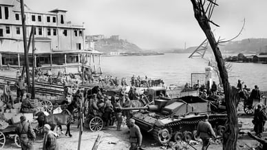 Під час Другої світової війни, 16 серпня 1941 року, Миколаїв був окупований німецькими військами. У місті діяла підпільна диверсійна група «Миколаївський центр». У ніч на 26 березня 1944 року десант на чолі з лейтенантом Костянтином Ольшанським здійснив успішну операцію в порту, за що всім учасникам присвоєно звання «Героя Радянського Союзу».