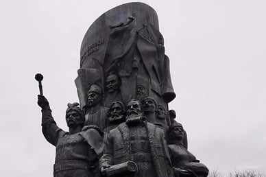 Площа Переяславської ради. Ця площа є місцем, де у 1654 році відбулася Переяславська рада — загальна військова рада, на якій гетьман Богдан Хмельницький присягнув московському царю. Ця подія призвела до укладення військово-політичного союзу та подальшого обмеження автономії України, що мало значний вплив на подальшу історію держави. На площі встановлено два пам'ятні знаки, що відображають суперечливість цієї події: пам'ятний знак «Навіки разом» (до 325-річчя возз'єднання) та пам'ятний знак на честь зречення присяги українськими козаками московському царю. Ця подвійність символіки наголошує на глибокій переоцінці історичних подій у сучасному українському суспільстві.