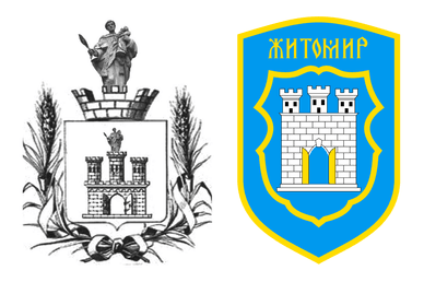 Герб, з незначними змінами, є ідентичним сучасному гербу Житомира, відновленому у 1991 році. Однак, з 1444 до 1794 року на середній вежі герба стояв Святий Яцек Одровонж. Після загарбання Правобережної України військами російської імператриці Катерини II, у 1796 році герб був змінений, і фігуру Святого Яцека прибрали.