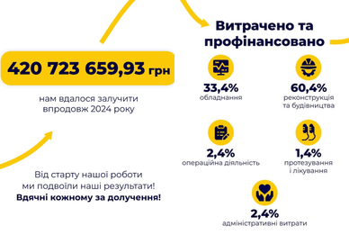 Інший важливий напрям — закупівля сучасного обладнання для медичних закладів. Наприклад, фонд передав центру роботизовану систему Lokomat, яка допомагає пацієнтам відновлювати навички ходьби після важких травм.