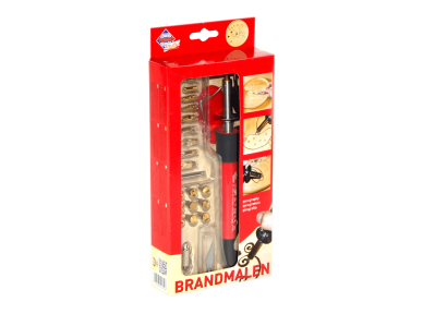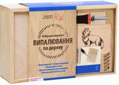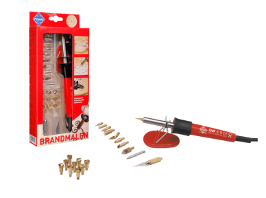 Це непоганий прилад для пірографії по дереву, який також може застосовуватися для випалювання на шкірі. До набору входить підставка для більш зручної та безпечної роботи, а також багато насадок для створення різноманітних візерунків.